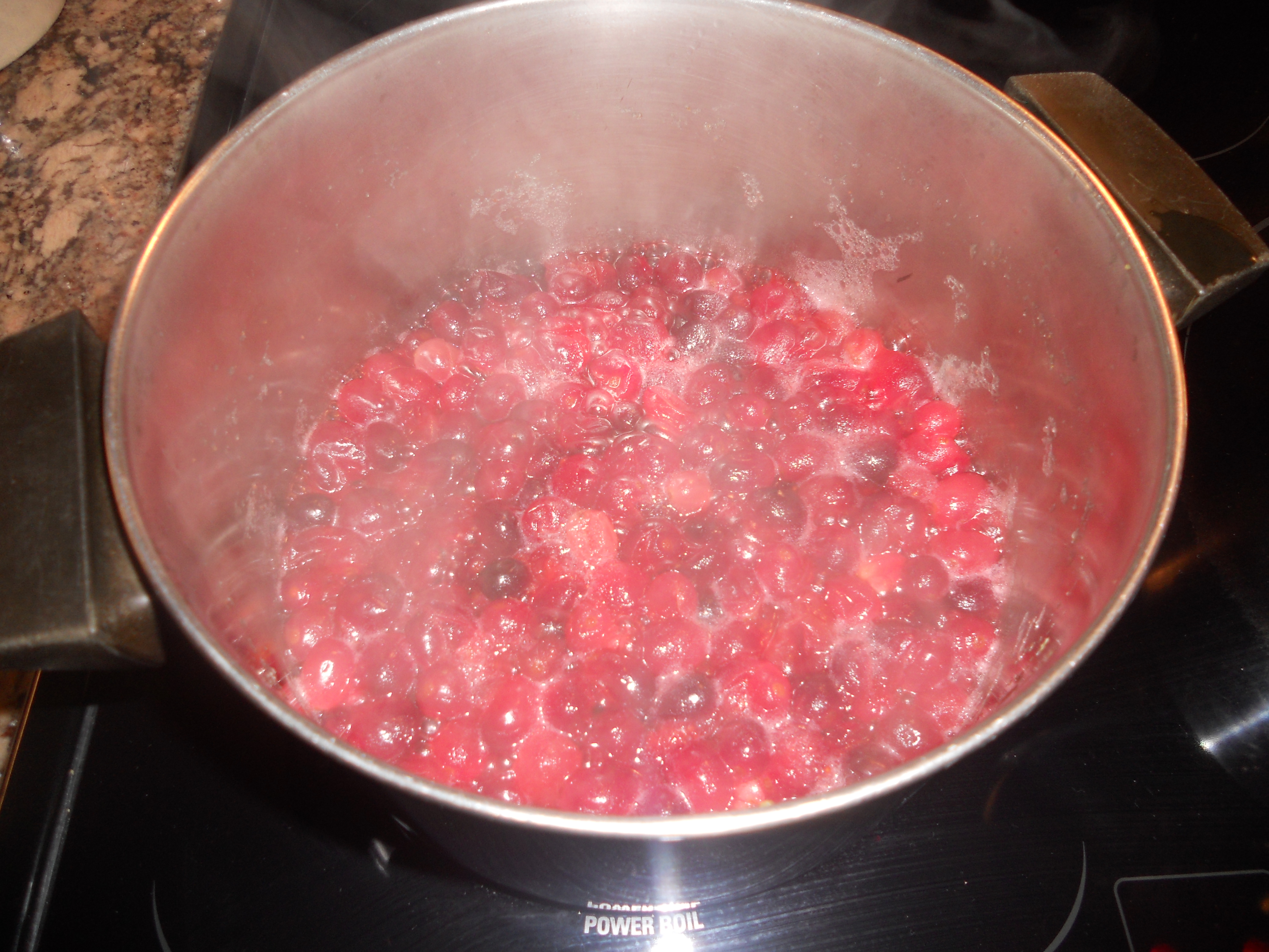 DSCN0386 Published November 19, 2012 at 4000 × 3000 in Blessings at Thanksgiving – Corn Casserole and Cranberry Conserve Popping cranberries!