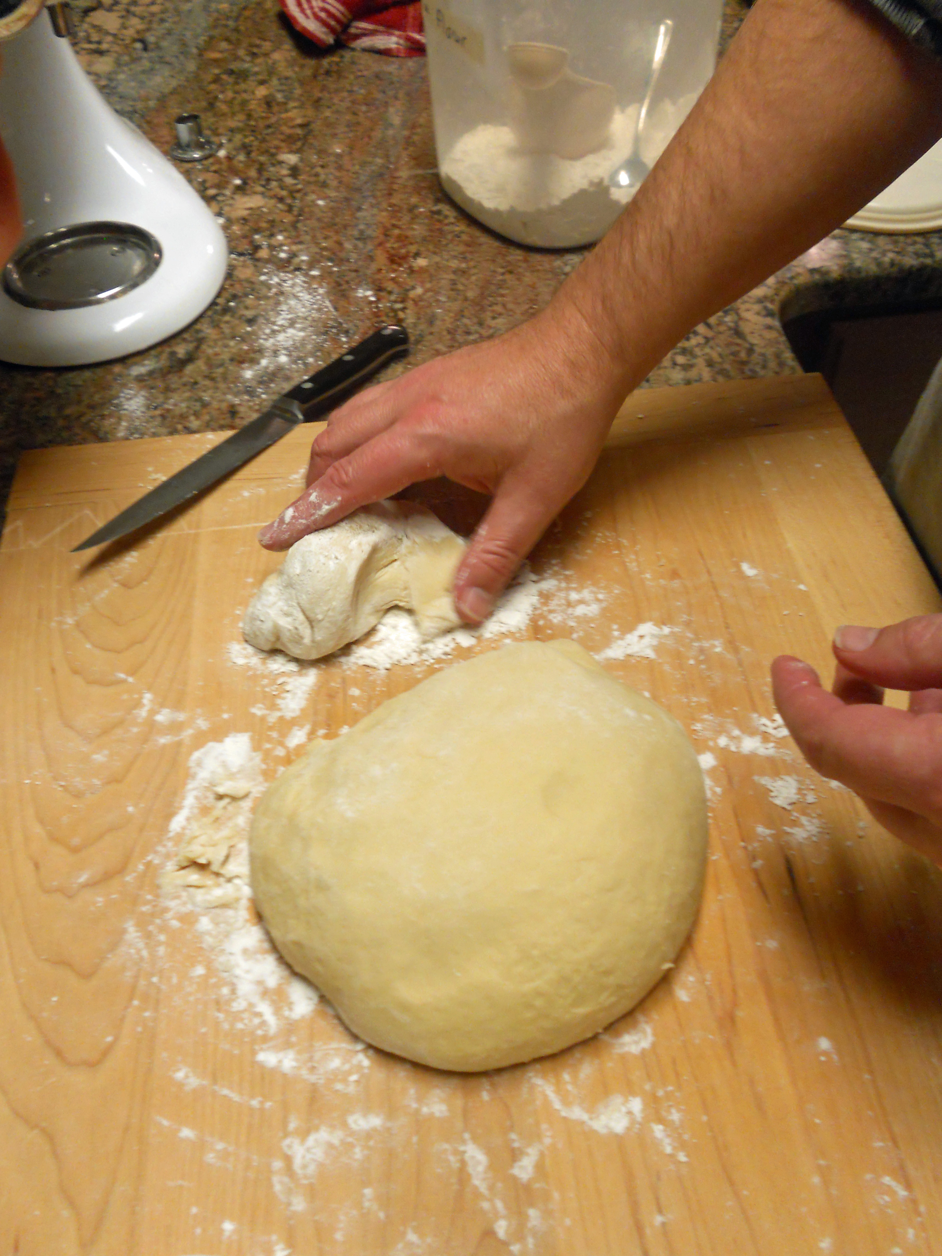 DSCN0555 Published December 16, 2012 at 3000 × 4000 in An Italian Christmas Dinner -Meat & Cheese Raviolis Cut off a small bit of dough to run through the machine.