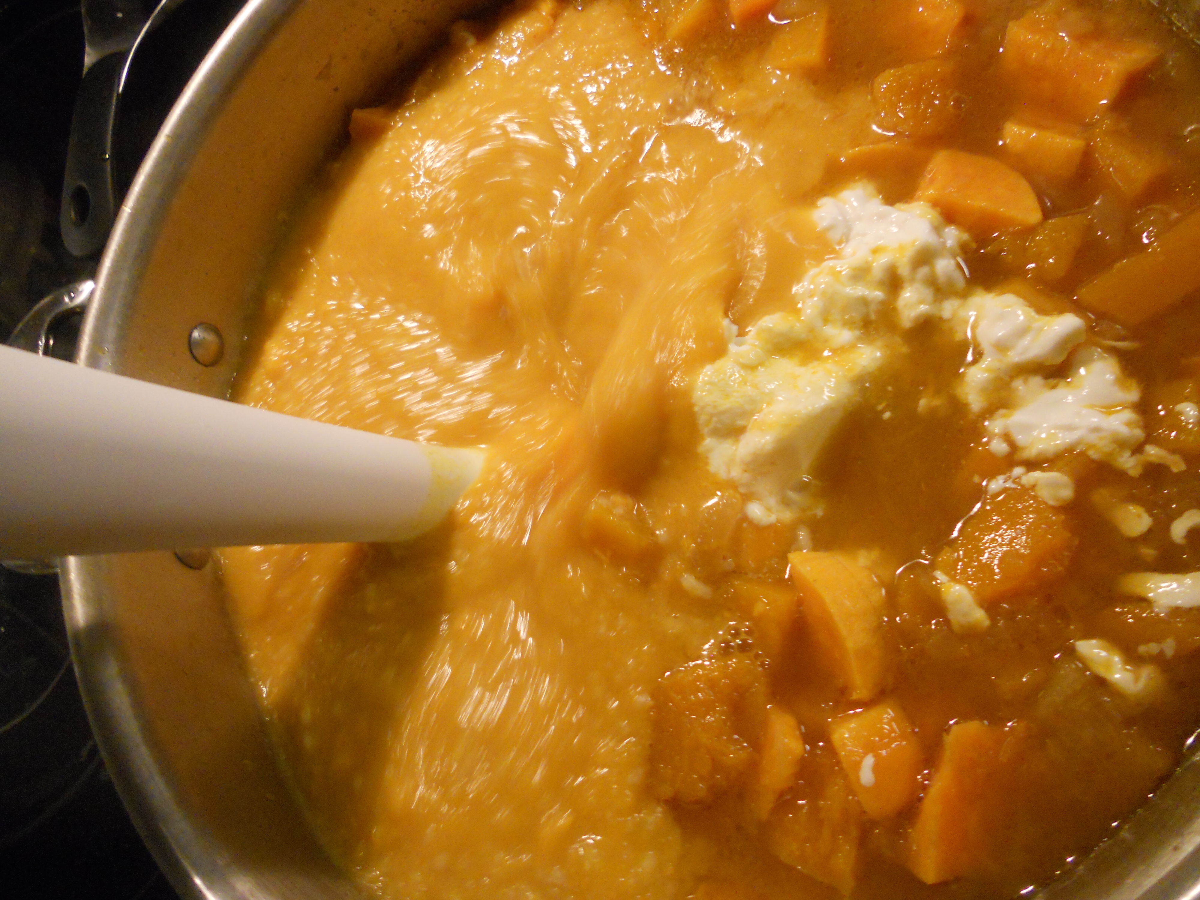 DSCN1274 Published January 4, 2013 at 4000 × 3000 in Cold Weather Comfort Food! Butternut Squash & Sweet Potato Bisque and Apple Cheddar Quickbread You can’t beat the ease & speed of a wand blender!