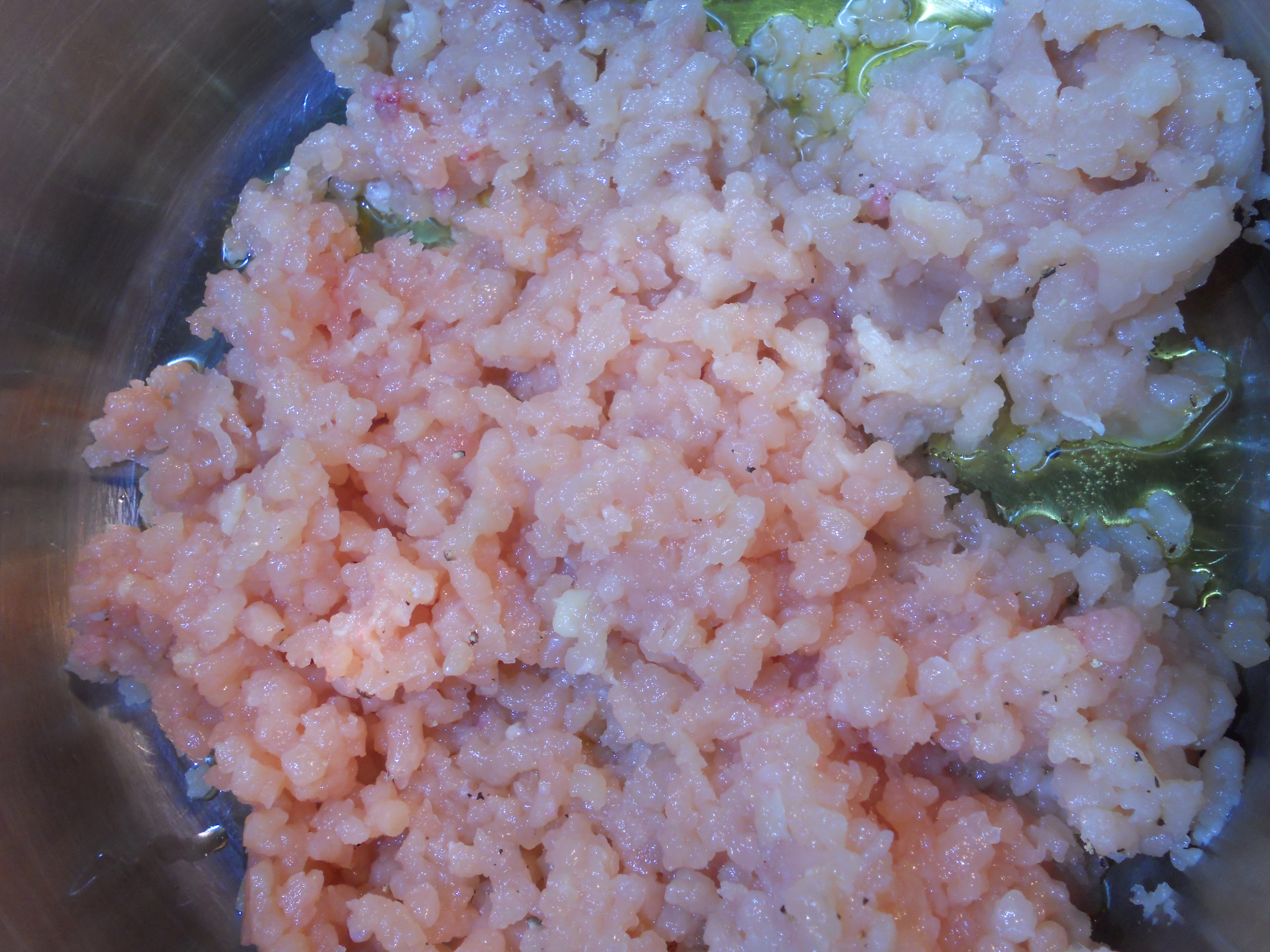 DSCN1214 Published January 7, 2013 at 4000 × 3000 in Warm Up with Chili – Italian Chicken Chili and Rich Corn Cake Brown the ground chicken in estra virgen olive oil.