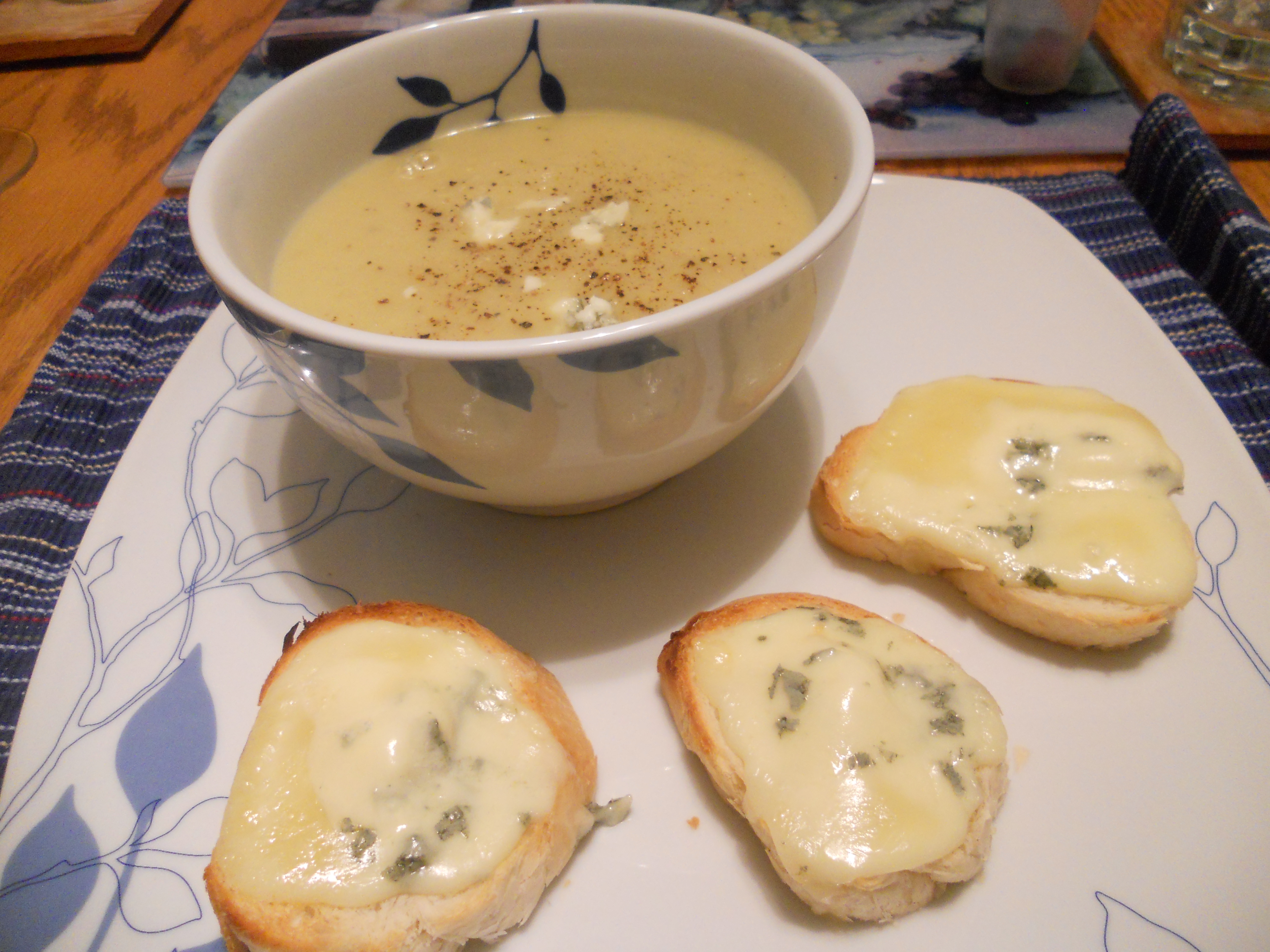 DSCN0316 Published January 15, 2013 at 4000 × 3000 in A Touch of Ireland – Leek & Potato Soup French bread topped with bleu cheese completes the meal.