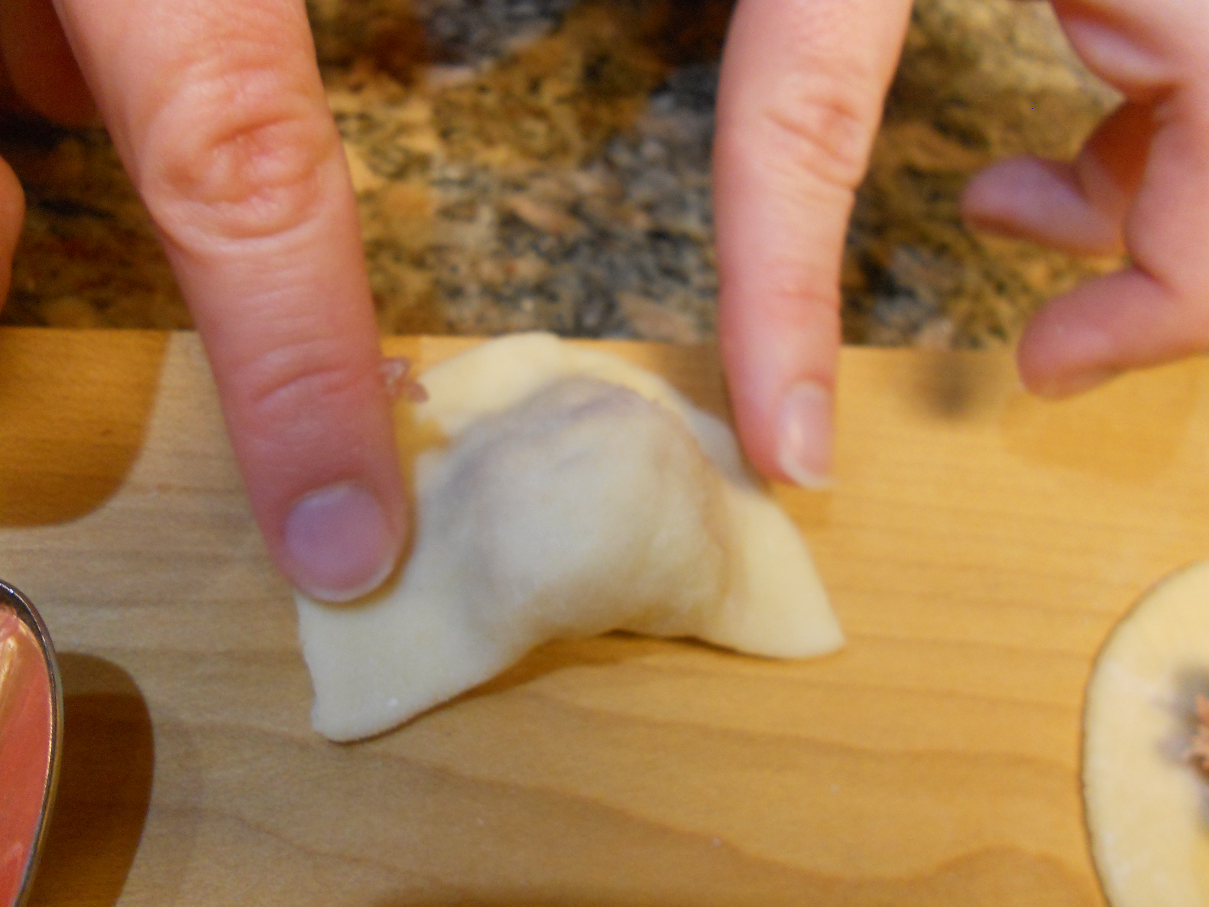 DSCN1480 Published January 15, 2013 at 4000 × 3000 in Celebrating Kelly! Pelmeni Fold the dough over the filling, sealing edges.