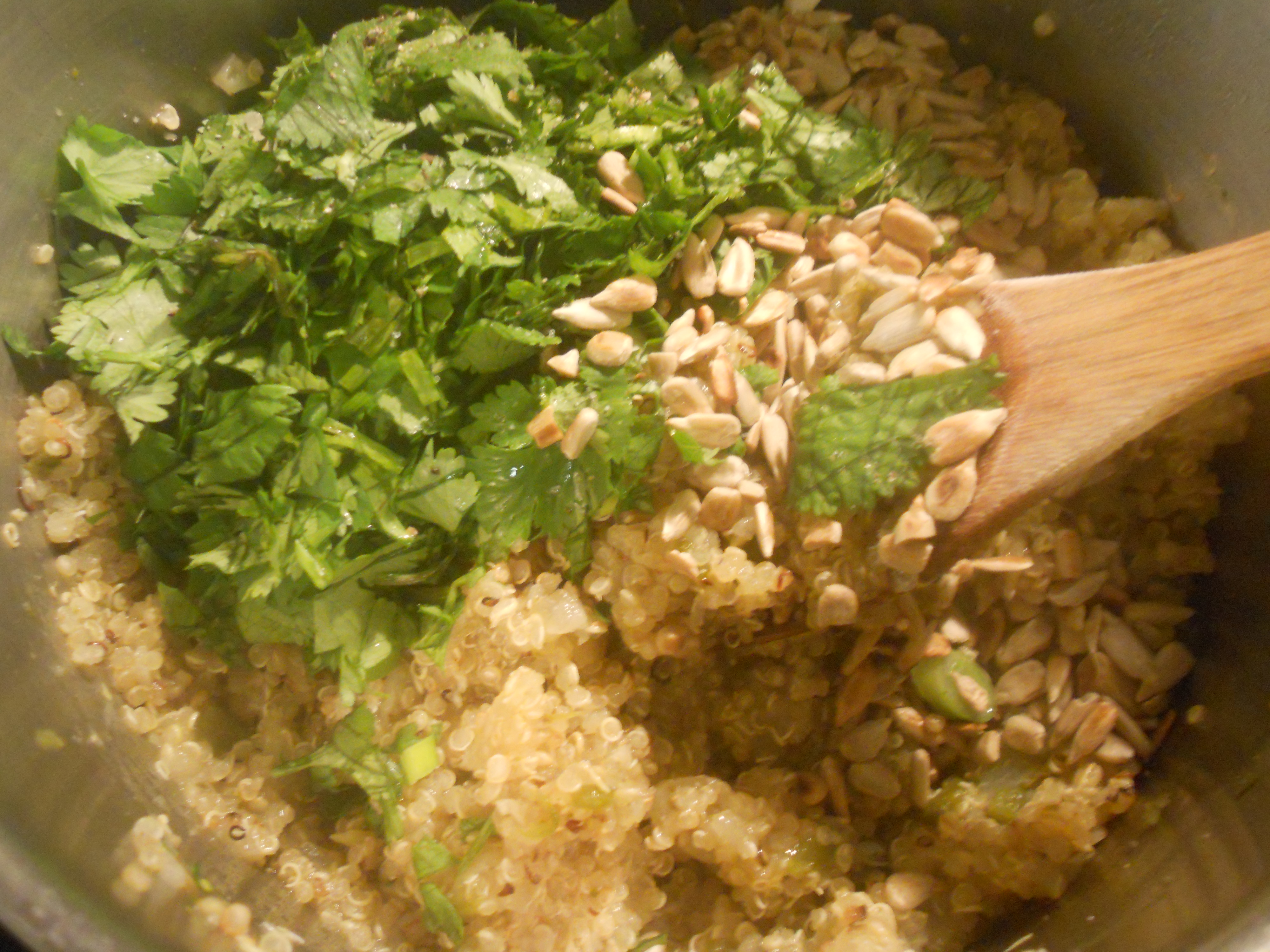 DSCN2198 Published February 27, 2013 at 4000 × 3000 in Cooking with Andrew – Chicken Milanese with Salad and Pickled Red Onions The cilantro and sun flower seeds get added just before serving.